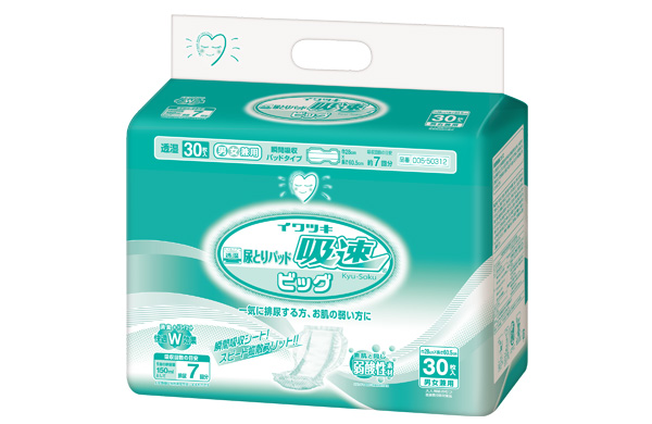 | 005-50312 | 透湿尿とりパッド 吸速ビッグ 30枚 | 4袋 | 4971089503125 |