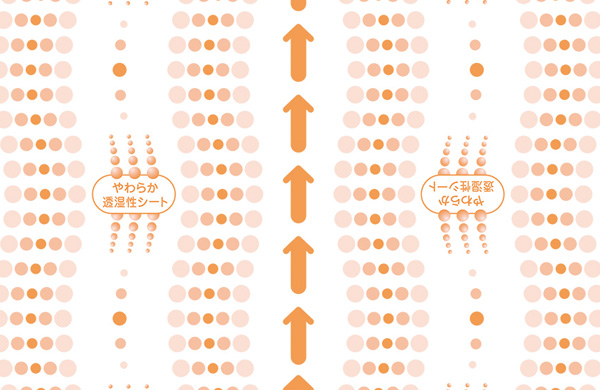 透湿性シートが湿気を放出、ムレやカブレを解消
